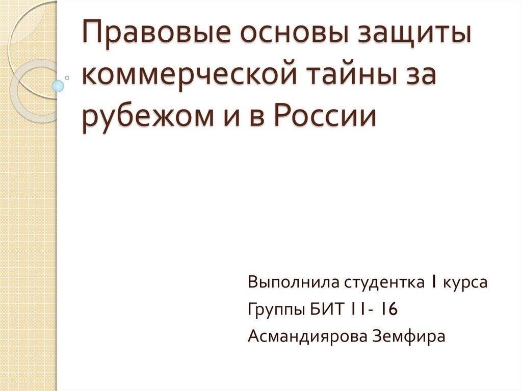 Правовые основы защиты коммерческой тайны