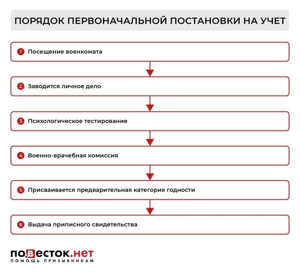 Этапы прохождения процедуры постановки на воинский учет